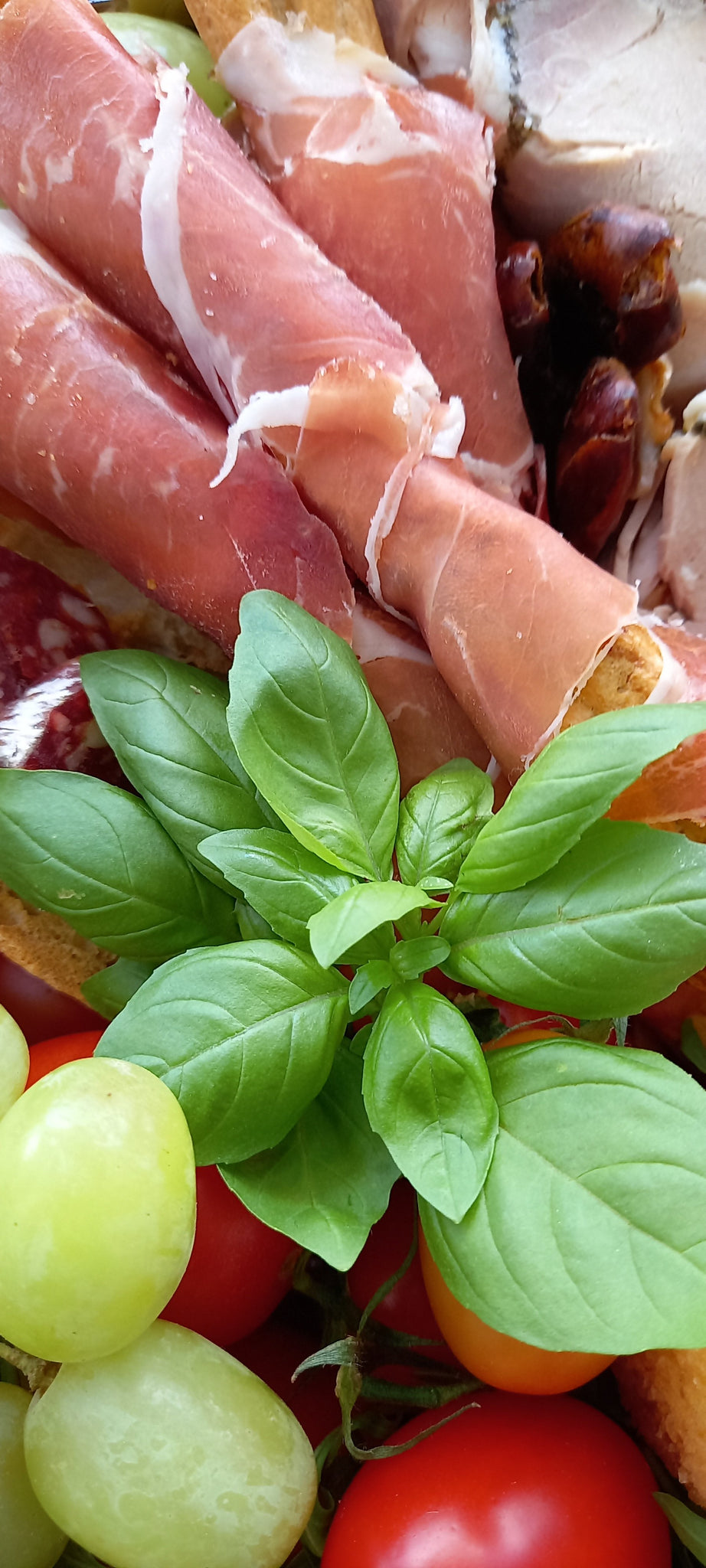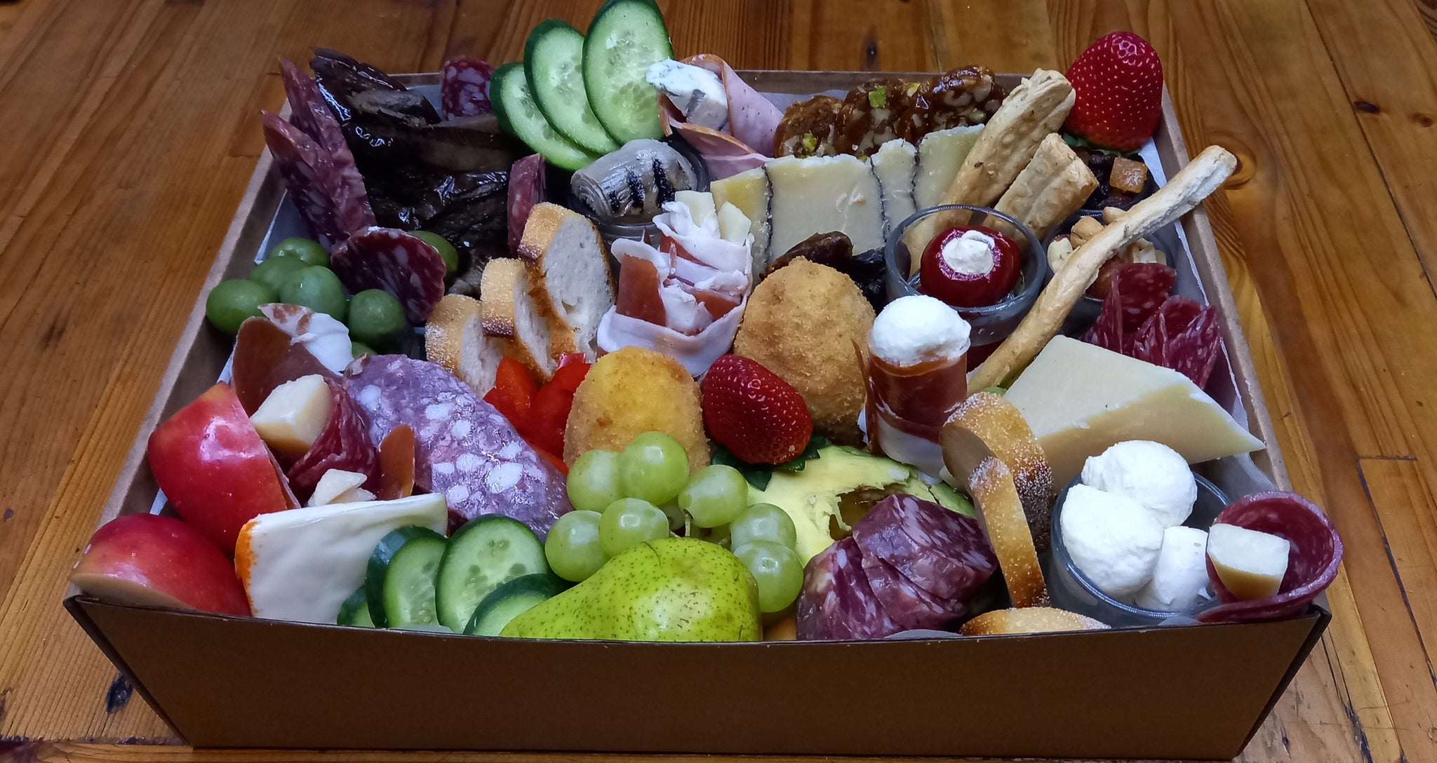 A selection of salami mortadella spicy salami prosciutto San Daniele prosciutto sliced and rolled in Gorgonzola cheese. Pecorino Sardo with truffle infused, Parmigiano Reggiano, Gorgonzola cheese Provolone some of the nice figs and Pistacchio paste fresh fruit and dry nuts some of the nice Italian grissini or pane casareccia or bruschetta depending to availability