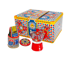The Storage Tin is embellished by Dolce&Gabbanas creativity inspired by the motifs of the Sicilian Cart.