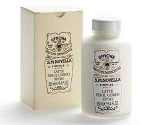 A moisturizing, emollient and refreshing body milk for all skin types. Paraben free. Used daily it keeps the skin hydrated, soft and supple.