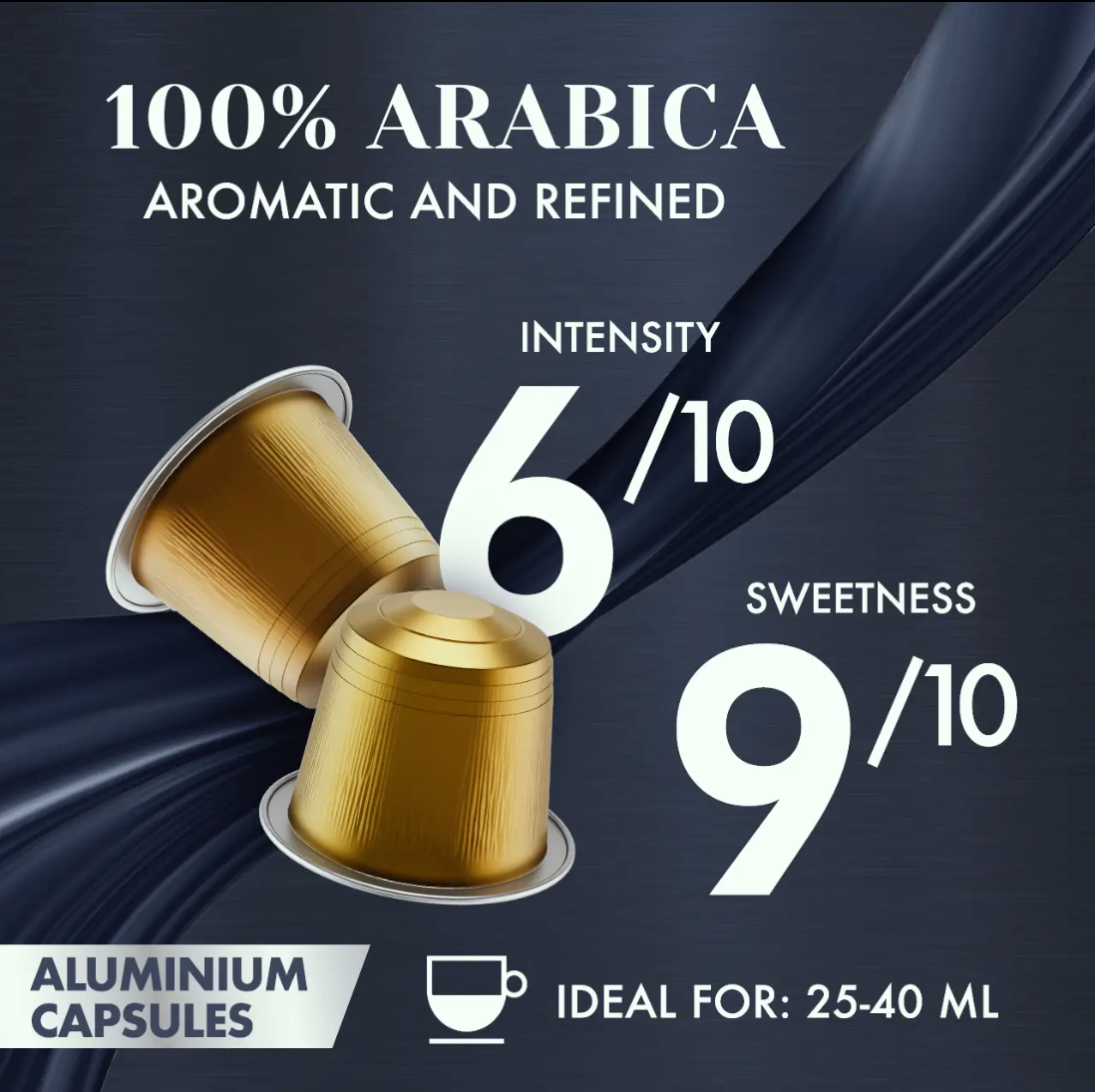 Made from 100% Arabica beans for a balanced and elegant flavor