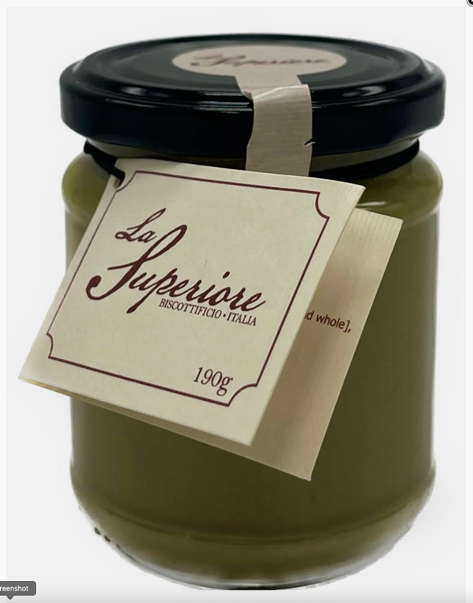 Pistachio cream from Sicily. Sweet cream that has the green colour of pistacchio DOP and does not contain any artificial colouring. It is ideal to be spread on a slice of bread or to stuff sweets of all kinds.