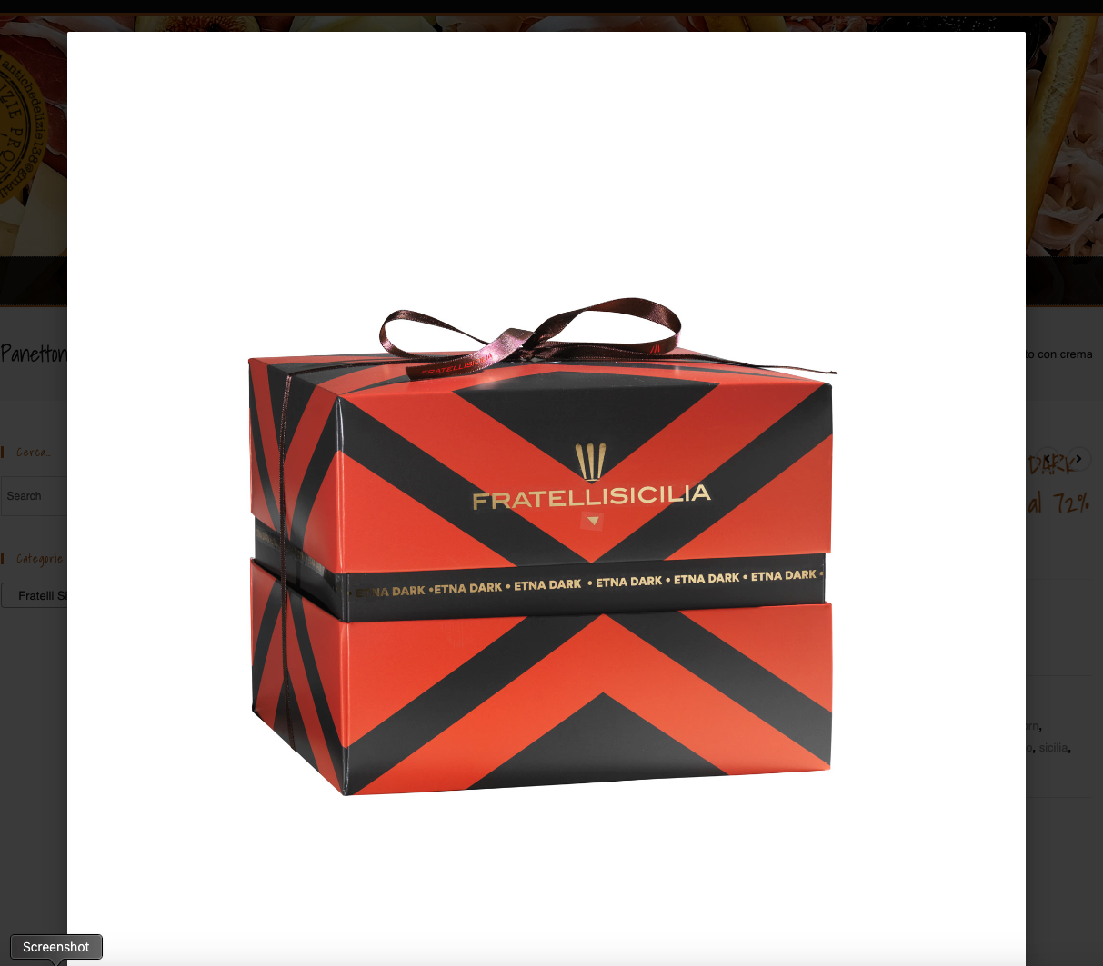 Panettone Etna Dark Fratelli Sicilia in 1.1kg pack. Artisanal panettone naturally leavened for 36 hours, strictly with mother yeast, which guarantees softness, aroma and digestibility. Covered in dark chocolate and filled with Sicilian blood orange cream.
